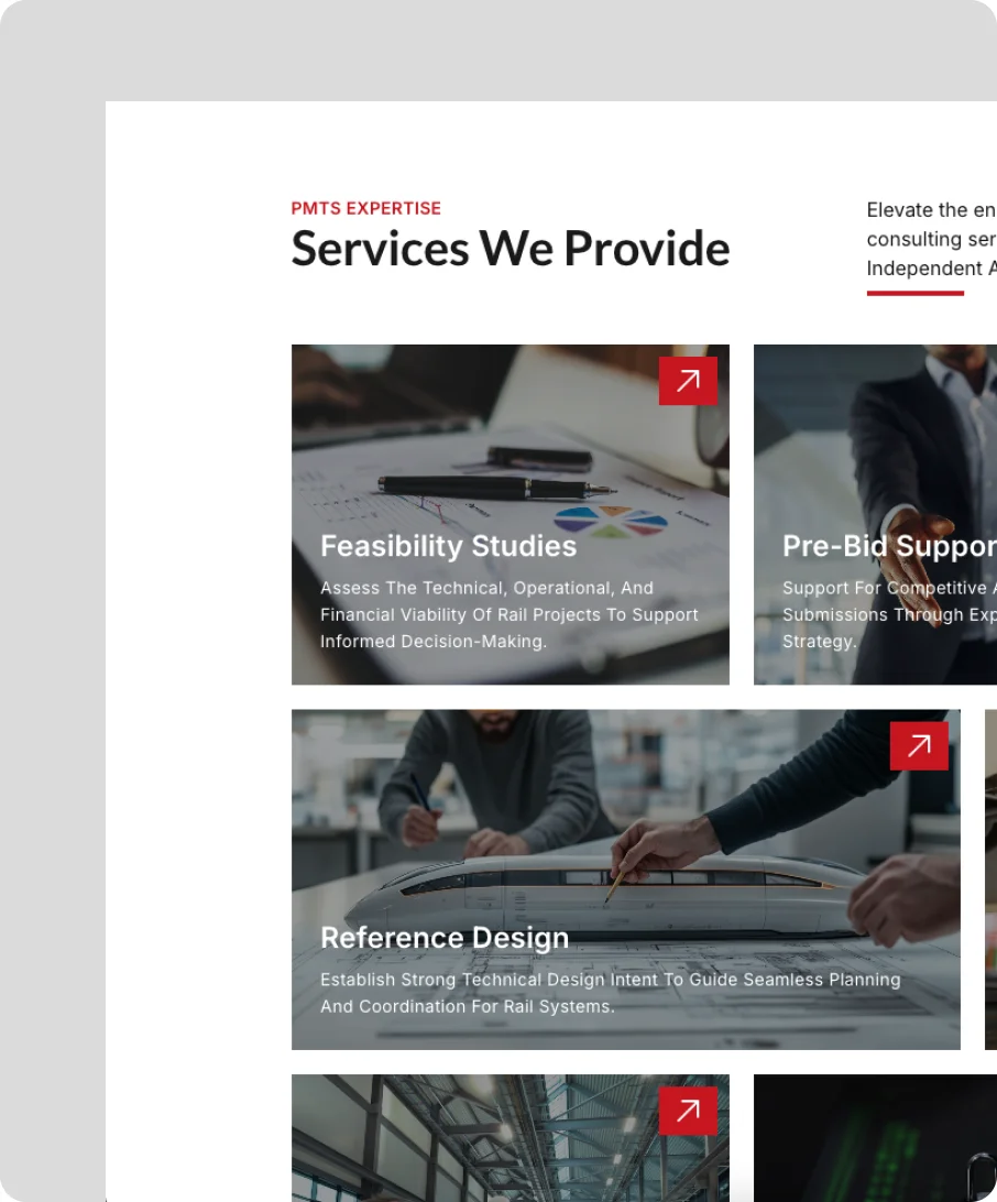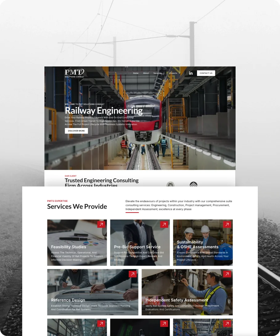 Partnering with PMTS in 2025, we set out to turn technical railway expertise into clear buyer journeys and qualified RFP inquiries. We mapped services and sectors, structured projects and credentials with ACF, and built a modular site in WordPress and Elementor with service pages, case studies, and decisive contact paths. The result simplifies updates for the team, improves credibility with proof points, and scales cleanly for future projects and tenders.